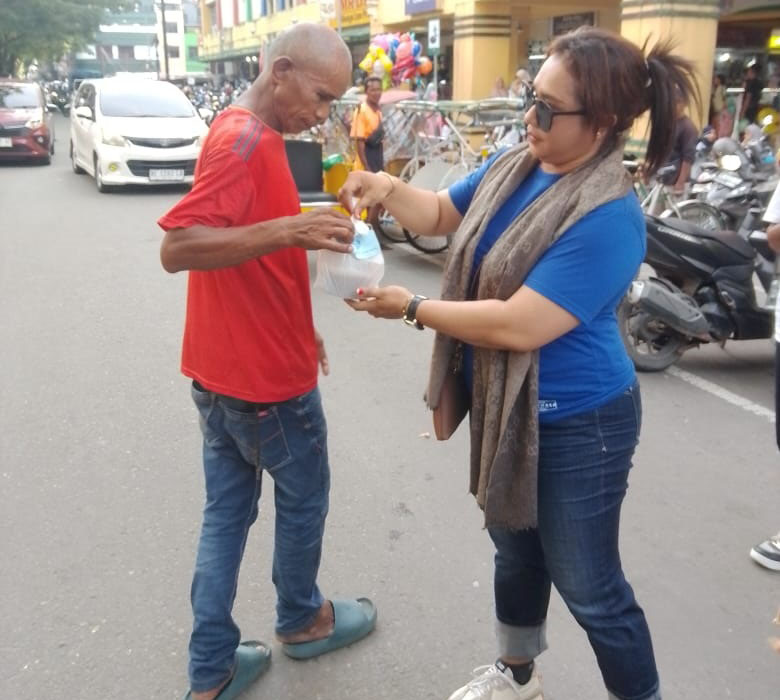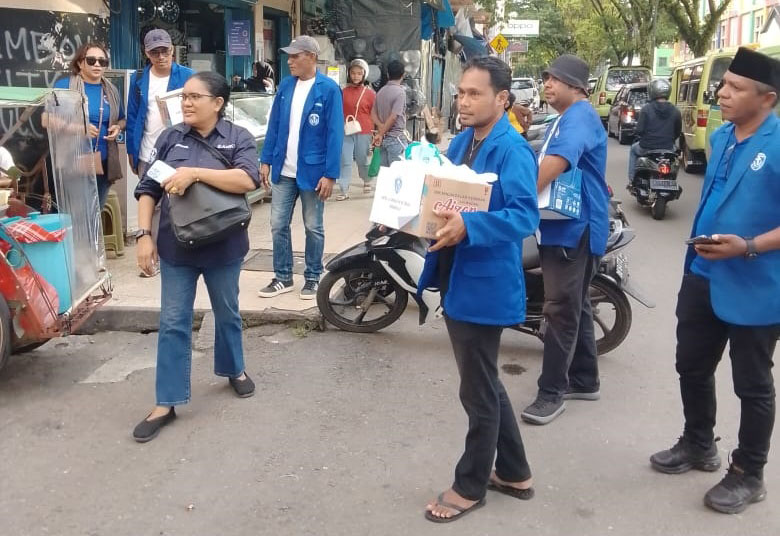 Pembagian Takjil yang berlangsung di sejumlah ruas jalan di Kota Ambon, Minggu (23/3/25) ditujukan kepada tukang becak, ojek serta tukang parkir.