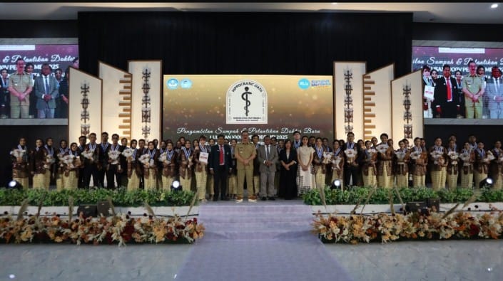 Ambon, Kapatanews.com – Acara Pengambilan Sumpah dan Pelantikan Dokter Baru Lulusan XXXIV Periode Mei 2025 Fakultas Kedokteran Universitas Pattimura Tahun 2025 dihadiri oleh Gubernur Maluku Hendrik Lewerissa, di Aula Gedung Presisi Polda Maluku, Selasa (3/6/2025).