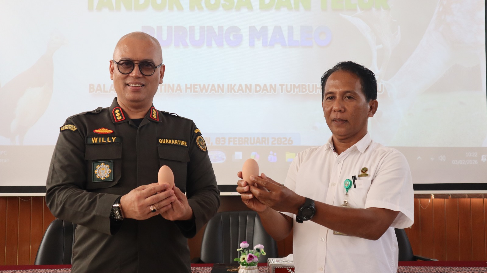 Ambon, Kapatanews.com– Balai Karantina Hewan, Ikan, dan Tumbuhan (BKHIT) Maluku melaksanakan serah terima barang bukti berupa opsetan tanduk rusa dan telur burung maleo kepada Balai Konservasi Sumber Daya Alam (BKSDA) Maluku. Kegiatan ini merupakan bagian dari penanganan media pembawa satwa liar yang dilindungi serta wujud komitmen bersama dalam penegakan hukum dan perlindungan keanekaragaman hayati.
