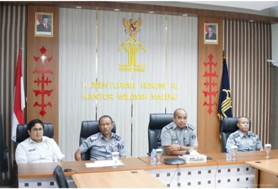 Ambon,Kapatanews.com- Kantor Wilayah Kementerian Hukum (Kanwil Kemenkum) Maluku mengikuti Rapat Pembahasan Pemanfaatan Ruang Kerja dengan kementerian lain secara virtual dari ruang rapat pimpinan.