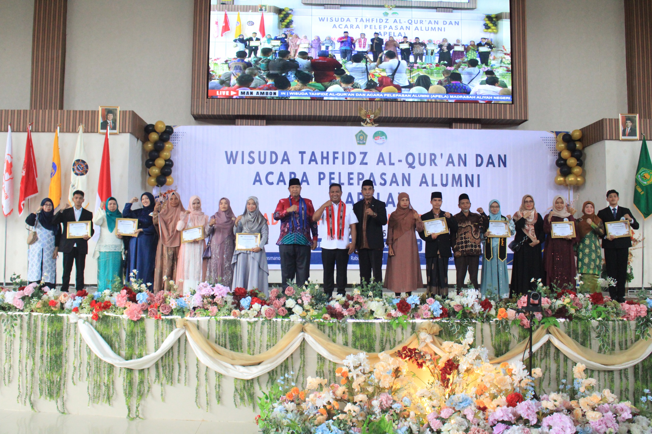 Ambon,Kapatanews.com.-Wakil Gubernur Maluku H. Abdullah Vanath, menghadiri acara Wisuda Tahfidz Al-Quran dan Acara Pelepasan Alumni (APELA) Madrasah Aliyah Negeri Ambon, Rabu (7/5/2025) di Auditorium IAIN Ambon.