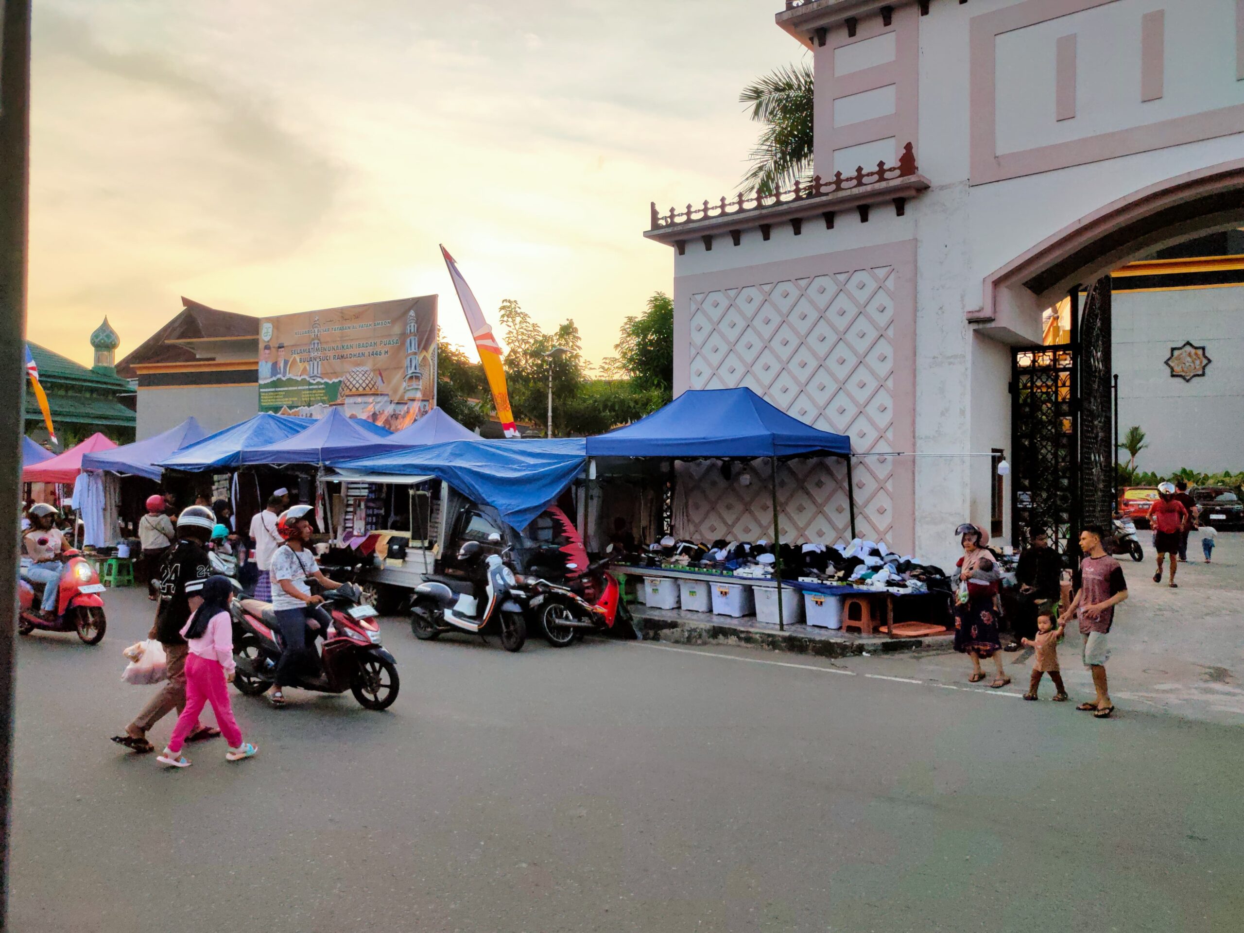 Ambon, KapataNews.com — Depan Masjid Raya Al-Fatah Ambon dipadati warga yang berburu Takjil, Sabtu (1/3/2025). Setiap tahunnya di kawasan ini menggelar Takjil Ramadan.