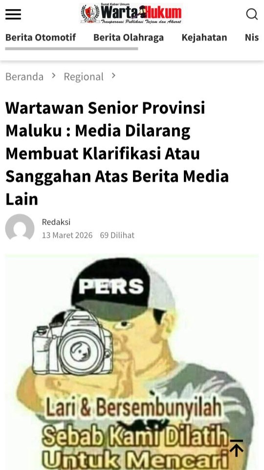 Saumlaki, Kapatanews.com – Perdebatan mengenai pemberitaan hak koreksi narasumber kembali mencuat setelah beredar tudingan bahwa media lain tidak berhak memuat penjelasan terhadap sebuah pemberitaan sebelumnya. Pandangan tersebut memicu reaksi keras kalangan jurnalis karena dinilai bertentangan dengan prinsip hukum pers nasional. Jumat, (13/3/2026).