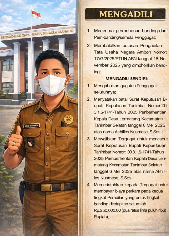 Fakta bahwa Pengadilan Tinggi Tata Usaha Negara Manado membatalkan putusan tingkat pertama dinilai sebagai sinyal kuat adanya cacat hukum dalam keputusan Bupati.