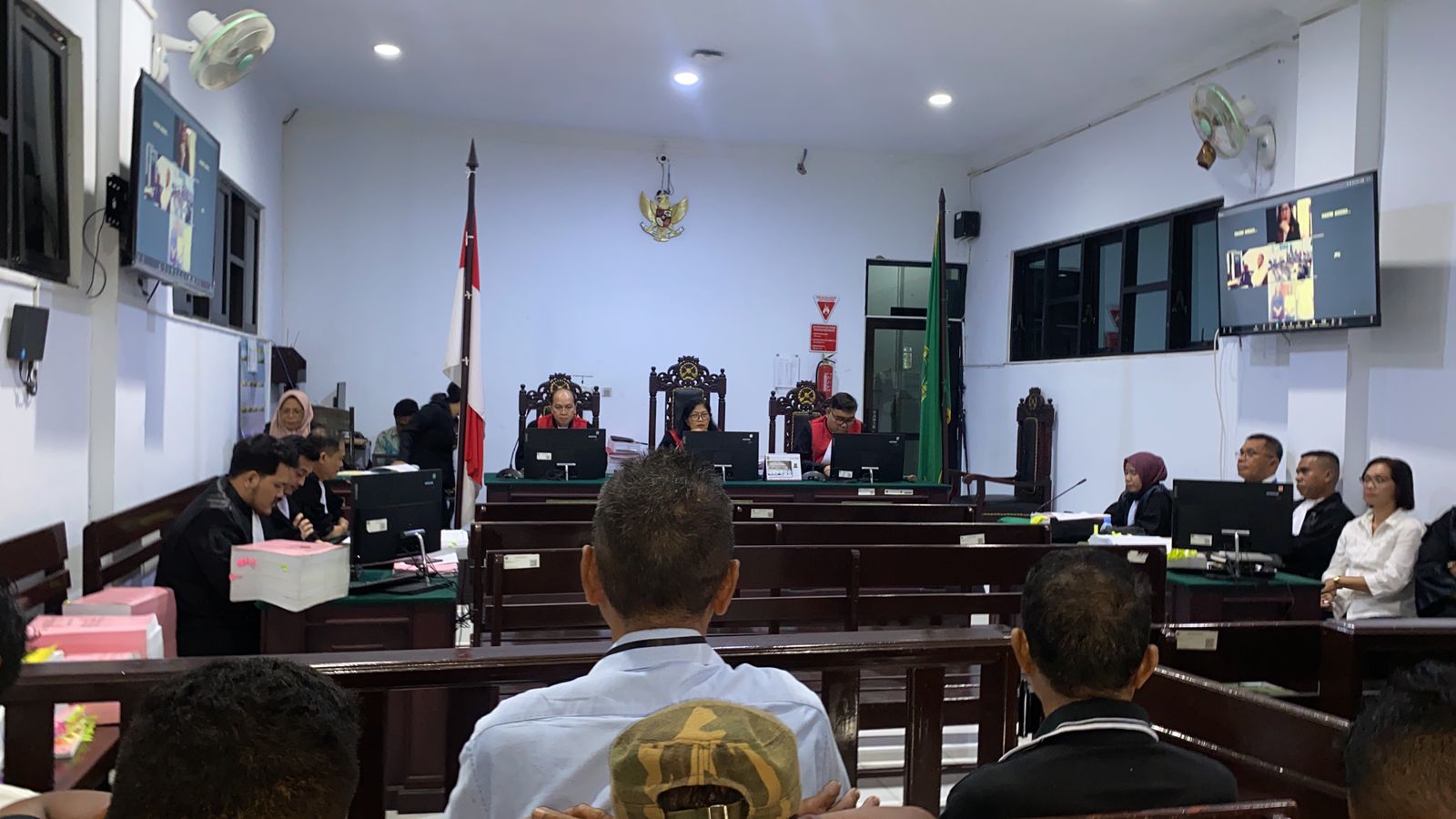 “Ketika Jaksa bertanya jaringan bagus, tetapi saat kami bertanya muncul gangguan sehingga pertanyaan tidak terdengar jelas,” kata Korneles Serin dalam persidangan tersebut.